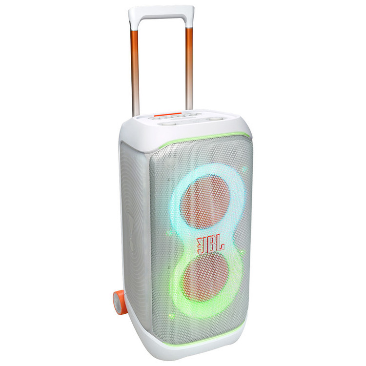 اسپیکر JBL PartyBox Stage 320 متناسب با نیازهای مهمانیهای مدرن و جابجایی آسان طراحی شده است. این محصول با اندازهای مناسب و دسته تلسکوپی و چرخهای محکم خود، حمل و نقل راحتی را فراهم میکند.